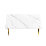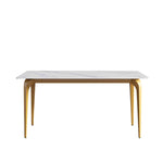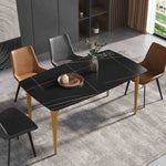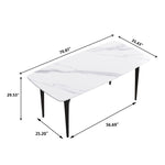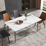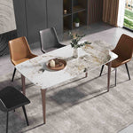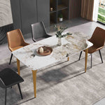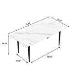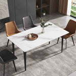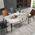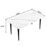 Luxury 63"-70.87'' Rectangular Dining Table for 4-6, Elegant Texture Marble Tabletop, Minimalist Carbon Steel Leg