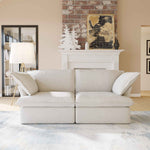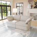 This is a slipcover sofa. Each module's cover is removable, making it very easy to maintain and clean the sofa. You can easily take off the covers for washing or replacement. This design not only offers convenience but also ensures that your sofa remains clean and tidy at all times.