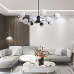 This stunning chandelier is perfect for a bedroom, living room, or entryway by providing ideal illumination to your home. The black wrought iron finish and the cream-white light bulbs highlight the sputnik design and add a vintage look and a playful taste to your room, contributes a designer look to your living space, and complements all your home settings. The perfect blending of metal and glass gives it a durable quality, makes it possible for long-time use.